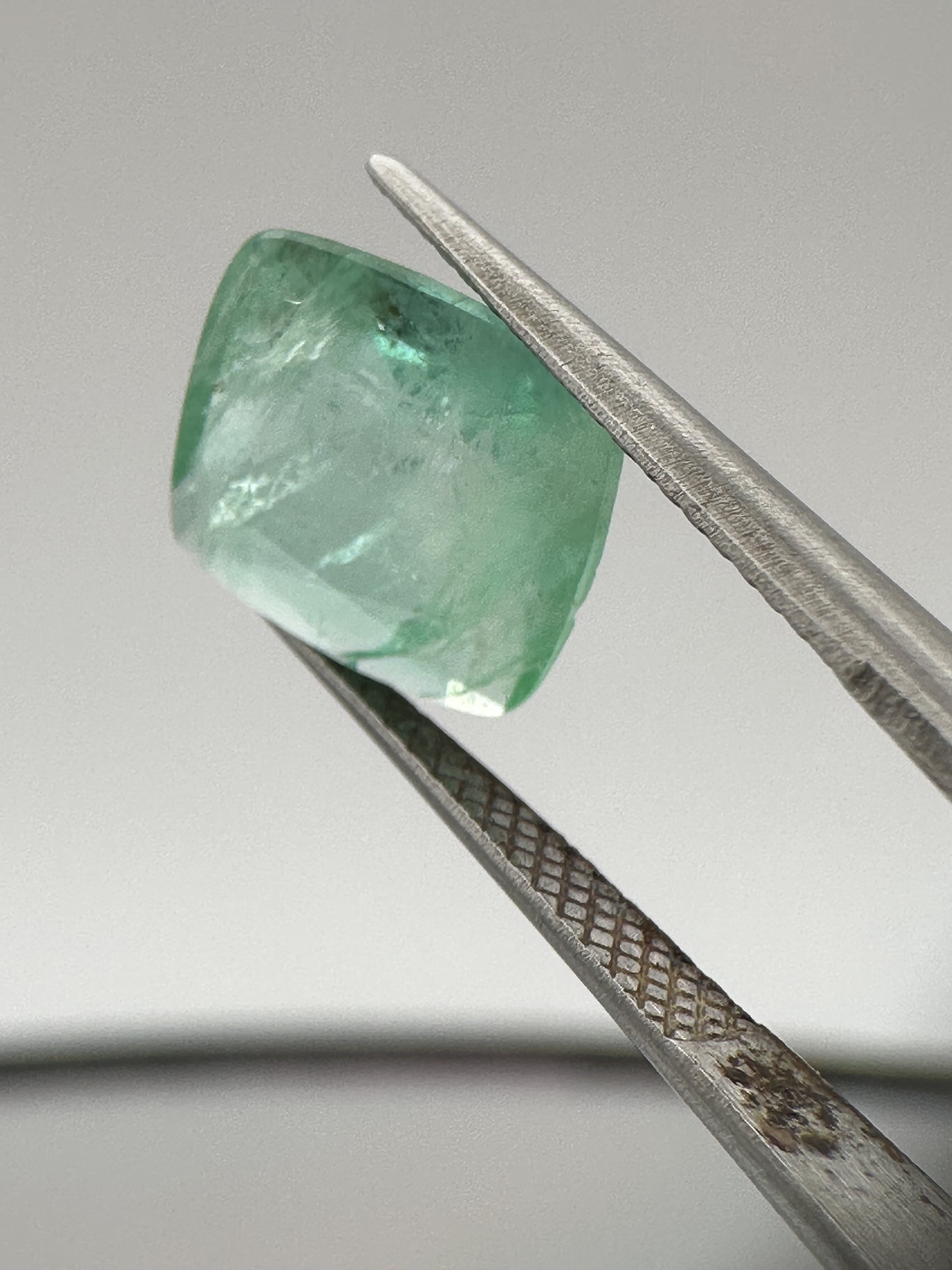 This natural emerald from Afghanistan weighs 3.89 carats and displays a rich green hue with semi-transparent clarity. Expertly fashioned into a cushion shape with a mixed cut, it offers a captivating balance of brilliance and depth. Measuring 11.22 × 10.53 × 4.89 mm, its proportions make it ideal for both fine jewelry and gemstone collections.