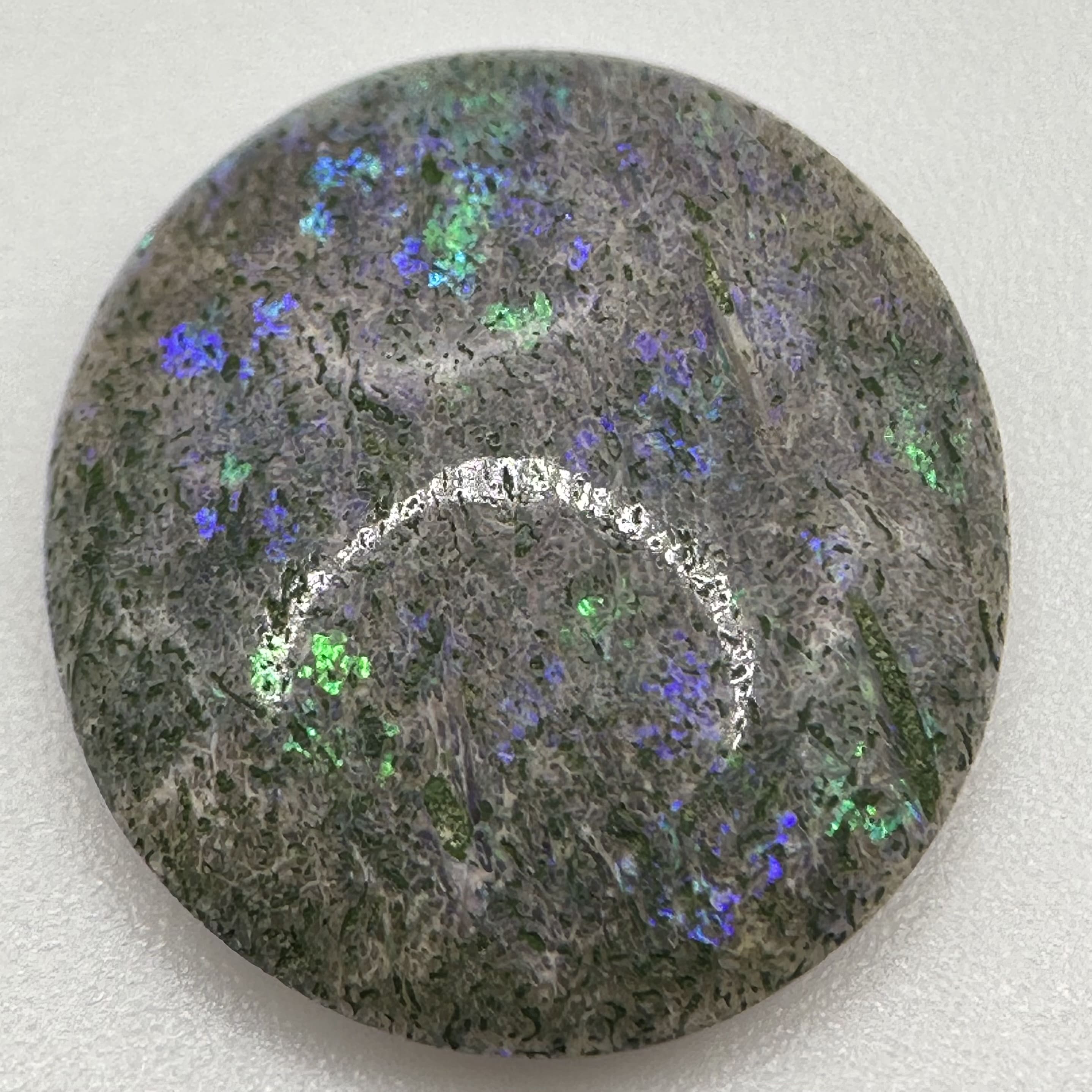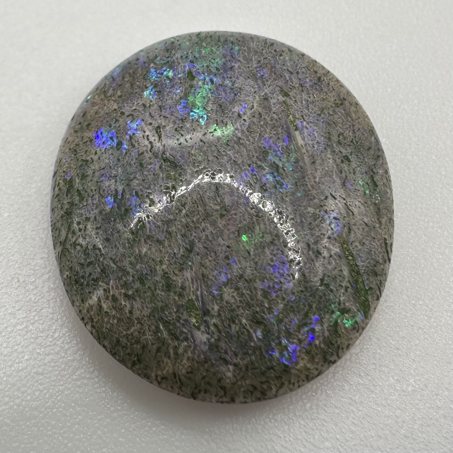 Cut in a low cabochon oval style, this opal measures 19.34 × 17.26 × 4.67 mm, offering both a substantial presence and a smooth, refined finish. Completely untreated, it retains its full natural beauty and authenticity.