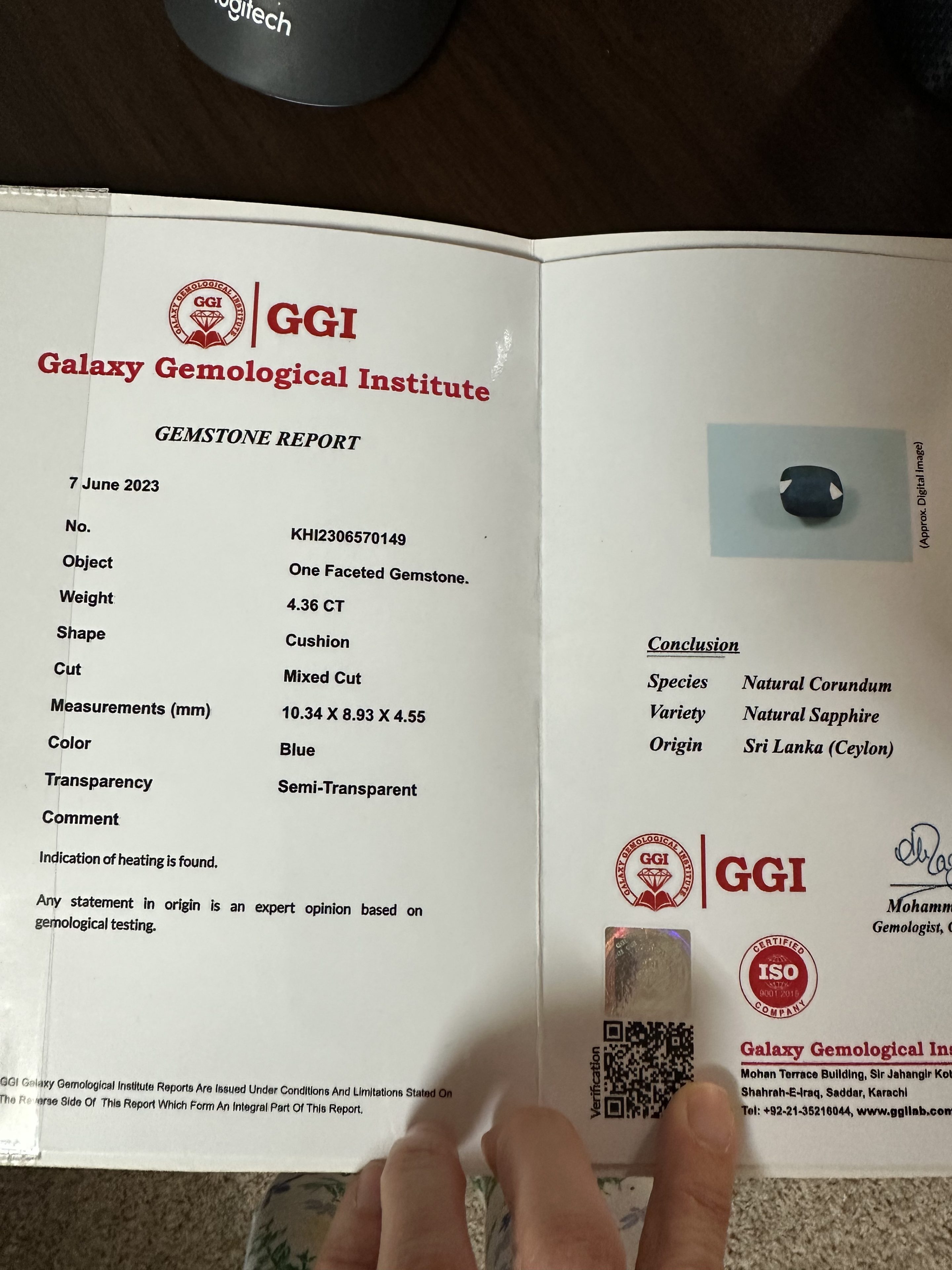 4.36 Carat Ceylon (Sri Lanka) Sapphire