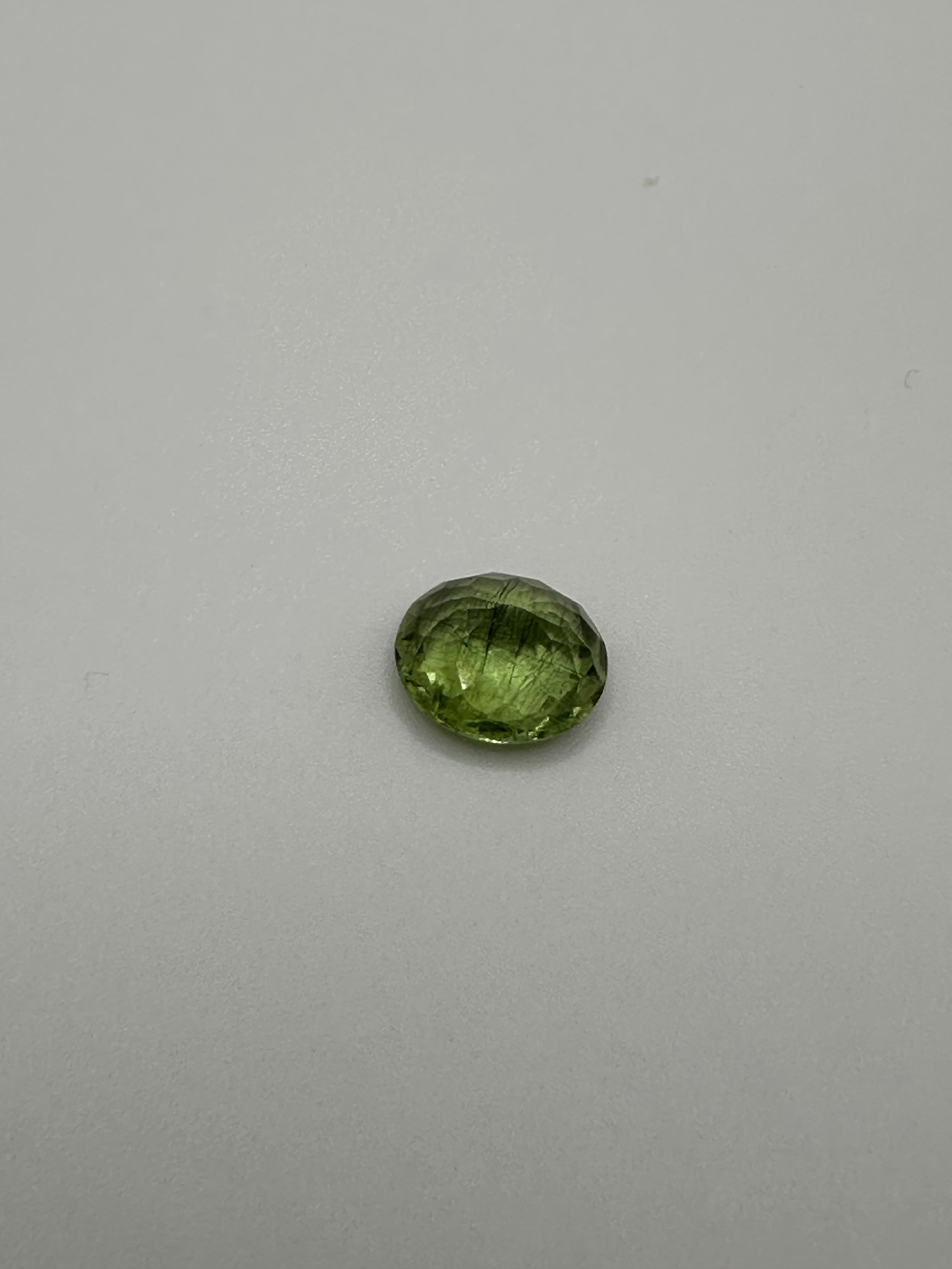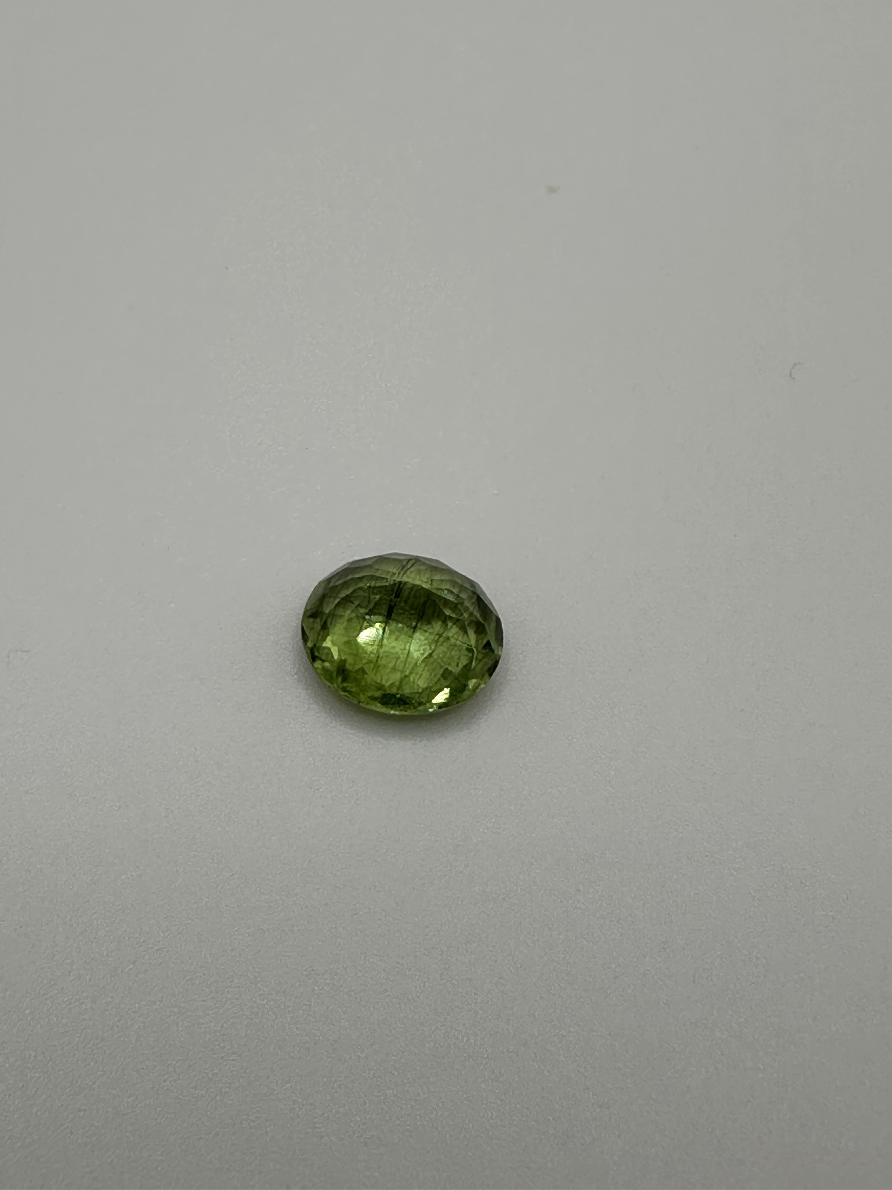 This natural peridot from Burma weighs an impressive 7.76 carats and radiates a lively, vivid green hue. Expertly cut into an oval shape with a combination of brilliant and fancy facets, it measures 13.04 × 11.48 × 7.78 mm, delivering exceptional light performance and a captivating glow.