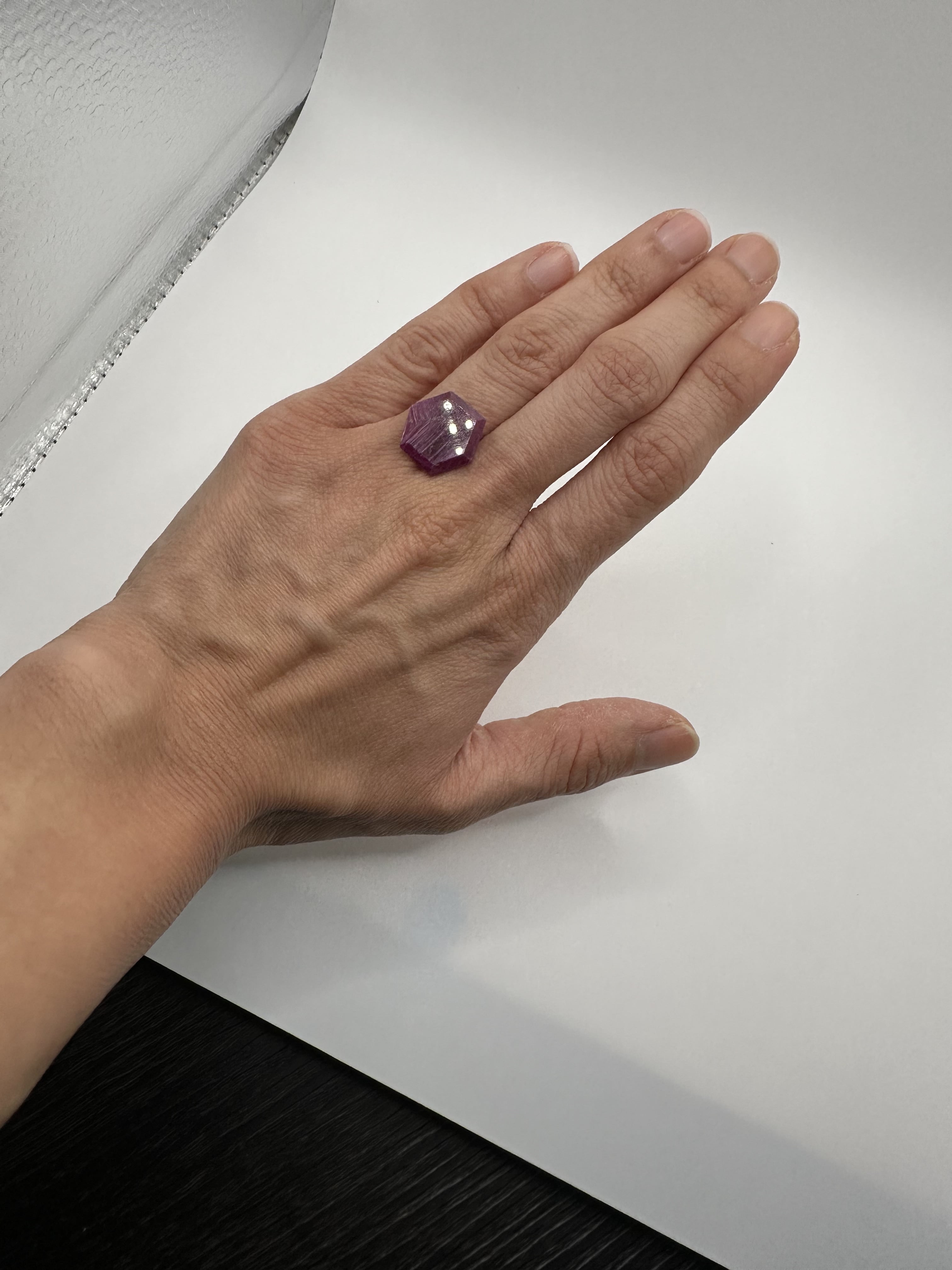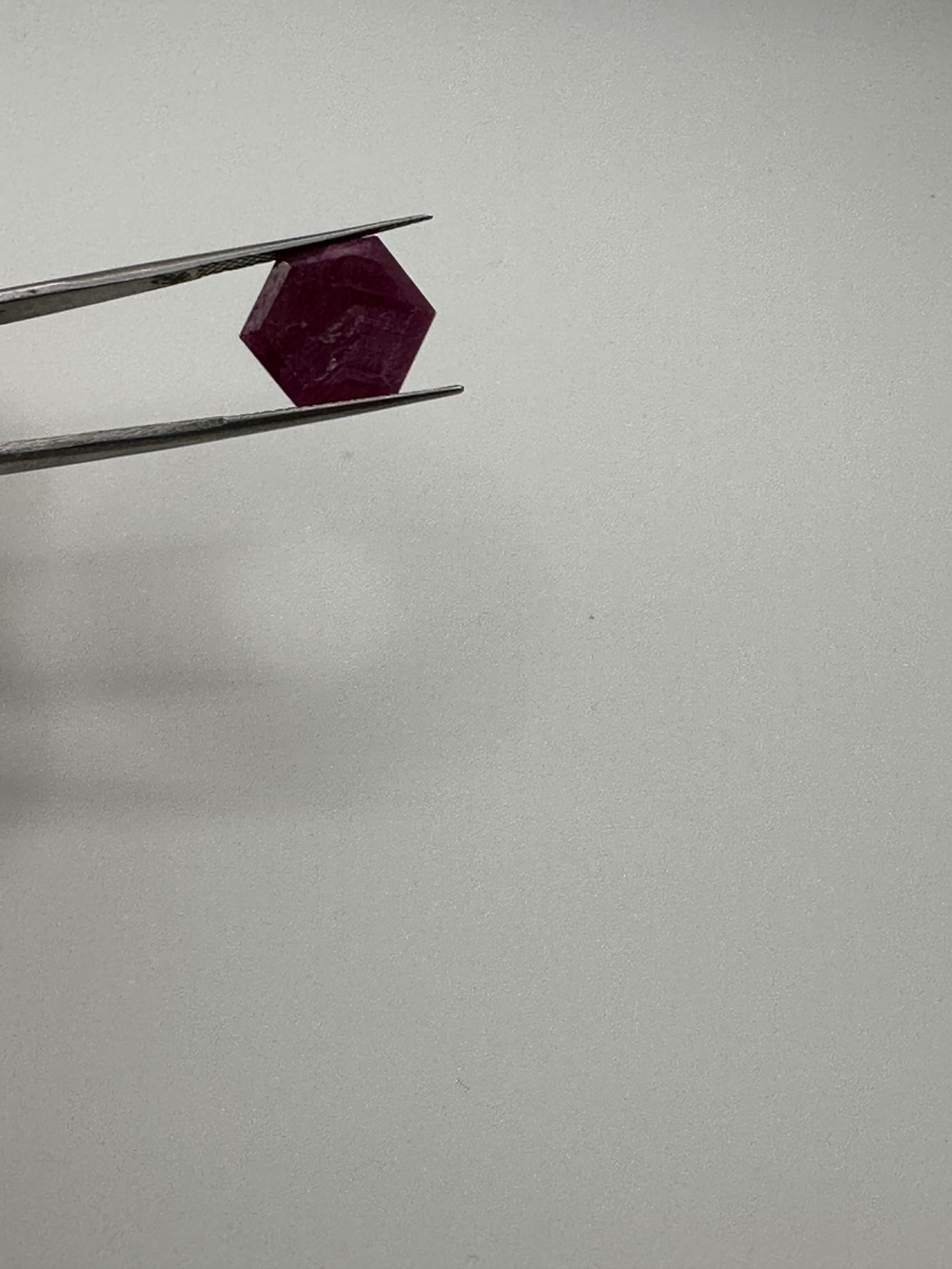 This remarkable natural ruby from Mozambique showcases a rich Red-Purple / Purple-Red hue, precision-cut into a bold hexagon with Step & Step faceting for striking symmetry and light reflection. Measuring 17.14 × 14.65 × 2.63 mm, it offers an impressive size while retaining exceptional natural purity.